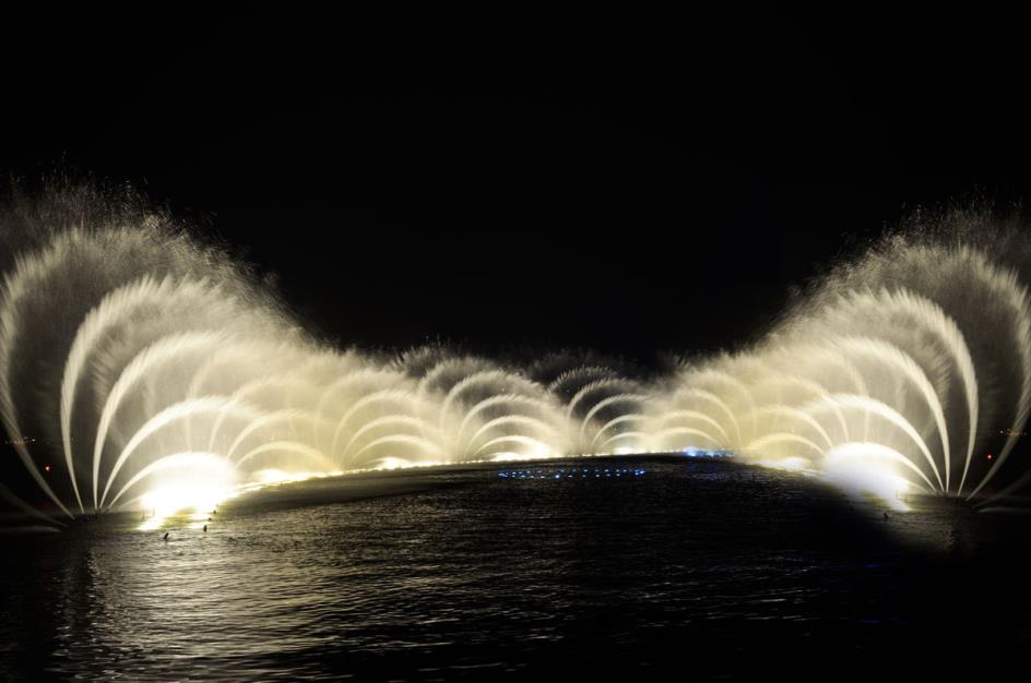 隨著音樂的變化,音樂噴泉在夜晚為城市居民增添了壯觀的視覺和聽覺盛宴。在快節(jié)奏的城市生活中的夜晚,這是一個(gè)相當(dāng)浪漫的休閑娛樂項(xiàng)目。
