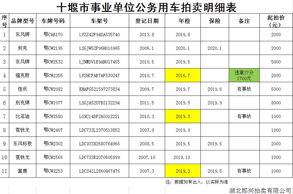 附:十堰市事業(yè)單位公務(wù)用車拍賣明細表