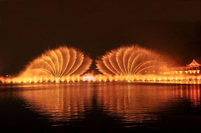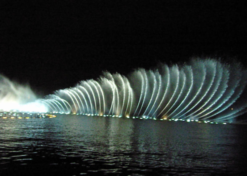 一維數(shù)控?fù)u擺噴頭是通過(guò)專用精密機(jī)構(gòu)把控制系統(tǒng)發(fā)出的數(shù)字脈沖信號(hào)精確地轉(zhuǎn)變成安裝于其上的噴頭的擺動(dòng)或轉(zhuǎn)動(dòng)或一定角度偏轉(zhuǎn),運(yùn)動(dòng)角度、速度均可由控制系統(tǒng)數(shù)字化控制,具有輸出轉(zhuǎn)矩大、控制數(shù)字化、運(yùn)動(dòng)精確、運(yùn)動(dòng)不攪線的優(yōu)點(diǎn)。一維數(shù)碼噴頭包括驅(qū)動(dòng)電機(jī)和噴水裝置,轉(zhuǎn)動(dòng)軸、主動(dòng)齒輪和從動(dòng)齒輪設(shè)置在密閉箱體內(nèi),軸承、軸承座安裝在密閉箱體上,轉(zhuǎn)動(dòng)軸兩端分別伸出密閉箱體外,一端裝噴口,使用可靠,密封良好,傳動(dòng)合理。主要應(yīng)用于較大型音樂(lè)噴泉中,常組合水型有千手觀音,變頻跑泉、萬(wàn)變花籃等,動(dòng)感十足,變化多樣。